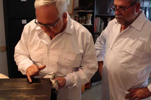 In the author's studio, working on an engraving |