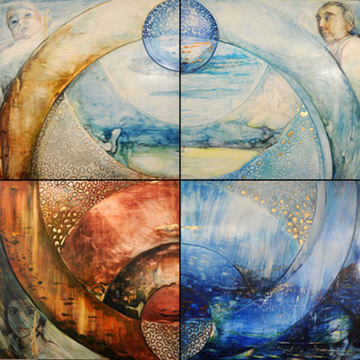 El artista presenta una serie de temples sobre madera de gran formato, pintados al temple al huevo, iluminados con pan de oro y plata y bruñidos con piedra de ágata.