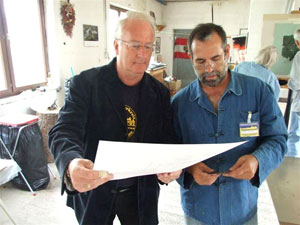 | Antonio Hervás en el taller de grabado | |