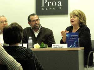 | Abajo: presentación del libro Die Stille (El silenci) de C.Duarte y A. Hervás, editado en Alemania por Ed. Buchholz, en la Librería Proa de Barcelona el 15 de enero de 2008 | |