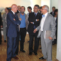 De izda. a dcha.: Joan M. Tresserras, conseller de cultura; A. Hervás, Joaquin Llena, conseller d'agricultura i Carles Duarte, director de la Fundació Lluis Carulla |