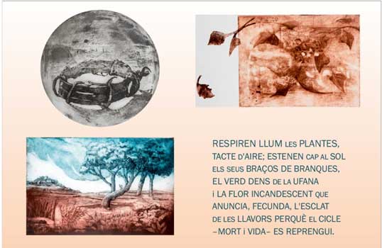 Presentació de la carpeta La respiració de les plantes, amb gravats de Luisa García-Muro, Paloma González, Hervás Amezcua i poemes de Carles Duarte. L'acte tindrá lloc dimarts 20 d'octubre a les 18:30 hores, a la Sala 52 de la Col·lecció d'Art Modern del Museu Nacional d'Art de Catalunya (Parc de Montjuïc), Barcelona |
