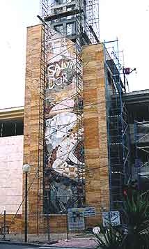 | Mural del campanario de la iglesia de El Salvador (Jaén), realizado con mármol con la técnica del trencadís (2003) | |