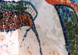 sobre el mosaico de trencadís, bajo relieves de un fondo de gres