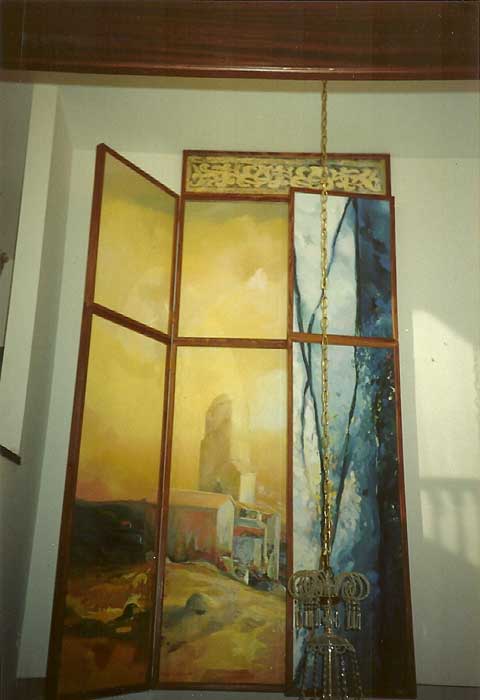 Origen. Mural al óleo, 6 piezas. El conjunto mide 450x300 cms (San Cugat, Barcelona, 1988) |